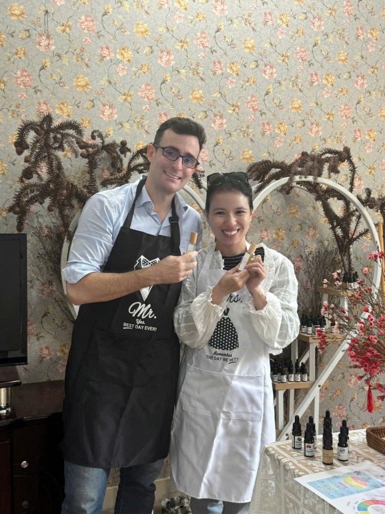 Trong một căn phòng ngập ánh sáng nhẹ, giữa sắc xanh của cây lá và thanh âm dịu dàng của âm nhạc, từng cặp đôi cùng nhau bước vào thế giới của khứu giác – nơi chỉ có cảm nhận và kết nối. Mỗi nốt hương được lựa chọn là một lát cắt của ký ức, một câu chuyện thầm thì được viết nên bằng tinh dầu và cảm xúc riêng biệt.