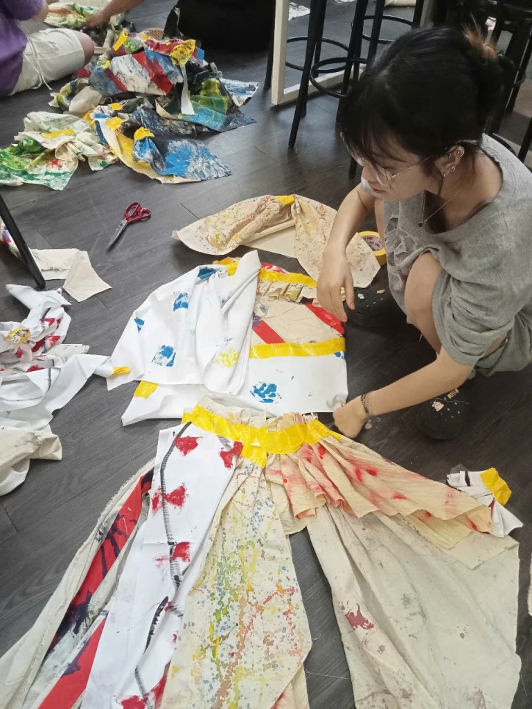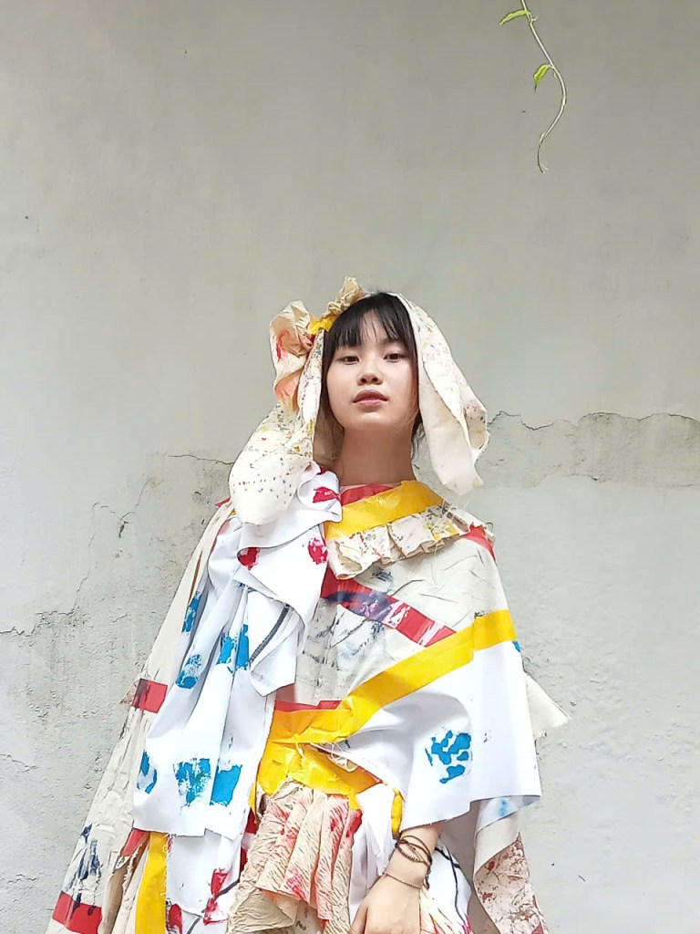 Những khóa học hay thì dù xa xôi, vất vả, tốn kém thế nào…Nắng vẫn tìm đường đi học. Và việc học chưa bao giờ làm Nắng phải thất vọng! Đây là sản phẩm styling thực chiến đầu tiên trên mẫu thật của hai chị em. Các tấm vải được áp dụng kĩ thuật “in” bằng tay từ những chất liệu, nguồn cảm hứng trong đời sống hàng ngày; sau đó được cắt ngẫu hứng và ứng tác để tạo ra trang phục.