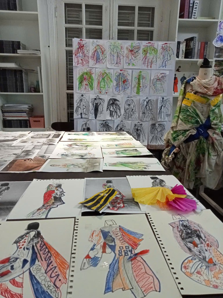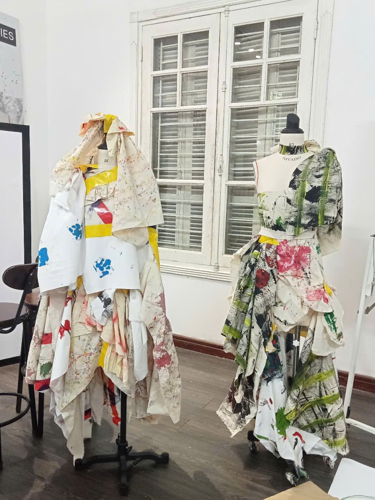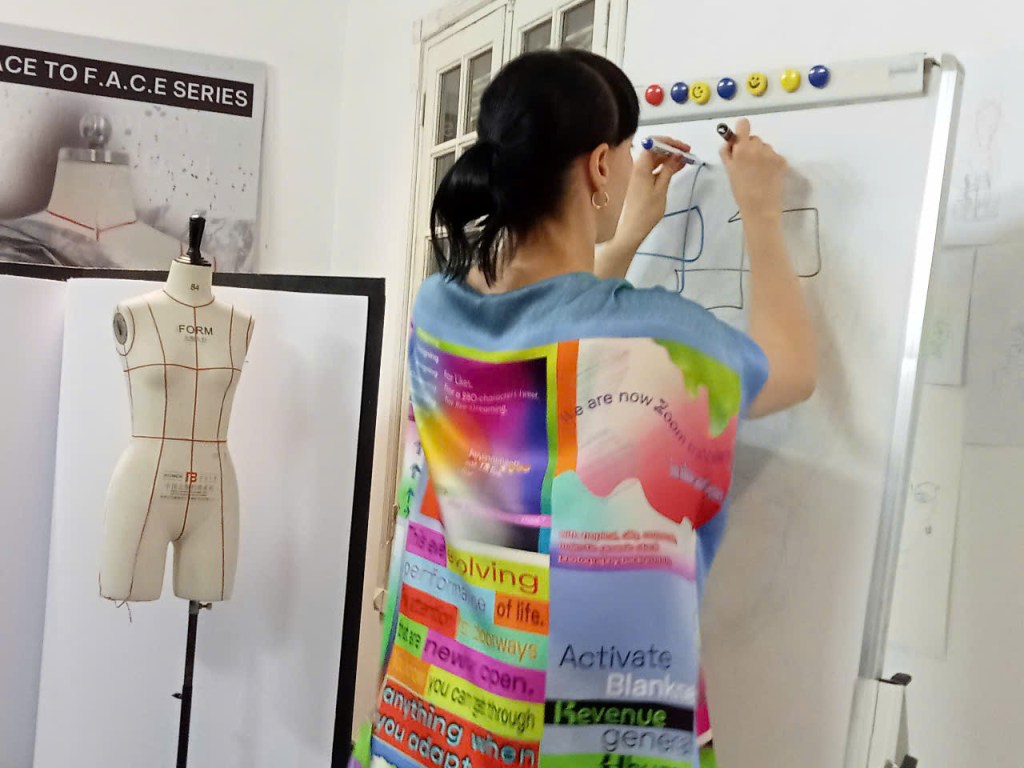 Từ những bản vẽ tự do, mình chuyển sang dựng hình, thử nghiệm chất liệu, cắt may không tạo rác thải – và lần đầu tiên thấy thiết kế có thể bắt đầu bằng sự chơi đùa đầy ngẫu hứng.