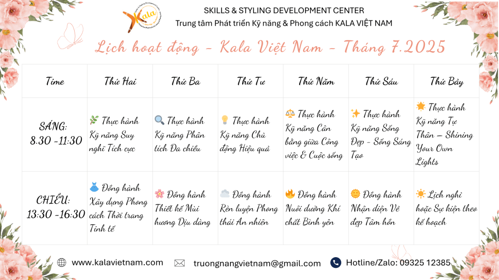 Kala mong muốn cùng vun trồng một cộng đồng những người Việt chăm chỉ học hỏi và rèn giũa các kỹ năng sống cân bằng, chủ động, bản lĩnh để thấu hiểu giá trị bản thân, sống tích cực, học tập suốt đời và chuyên tâm kiến tạo những giá trị sống thi vị một cách vững vàng và dịu dàng…như hoa nở từ bên trong 🌸. Một vài loài hoa trong khu vườn Kala đã nở tự thân như thế…Và Kala vẫn đang chờ những mùa nở mới – nơi bạn có thể bừng nở theo cách của riêng mình🪷.