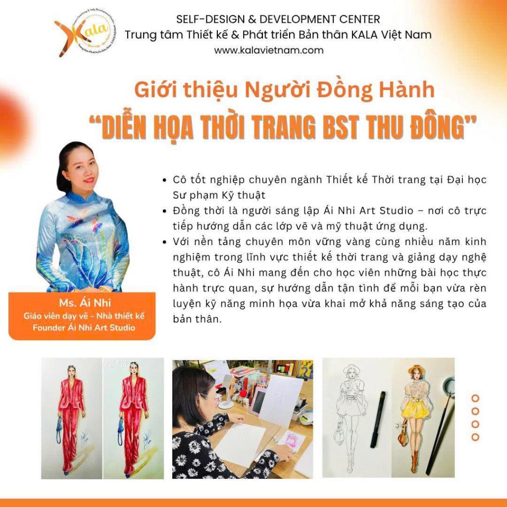 ✅ Gặp gỡ và học hỏi trực tiếp cùng Ms. Ái Nhi – Nhà sáng lập Ái Nhi Art Studio, giảng viên thiết kế thời trang với nhiều năm kinh nghiệm trong giảng dạy mỹ thuật và thiết kế sáng tạo.