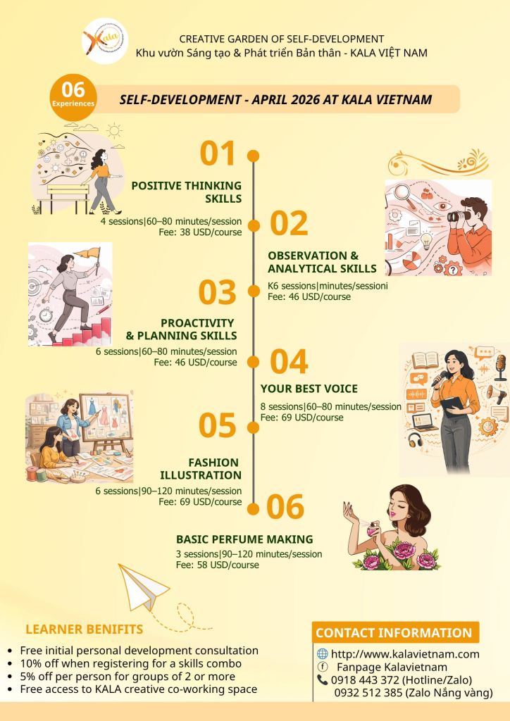 You can begin your personal development journey through in-person learning at KALA Vietnam, with a clear and well-structured path tailored to your needs.