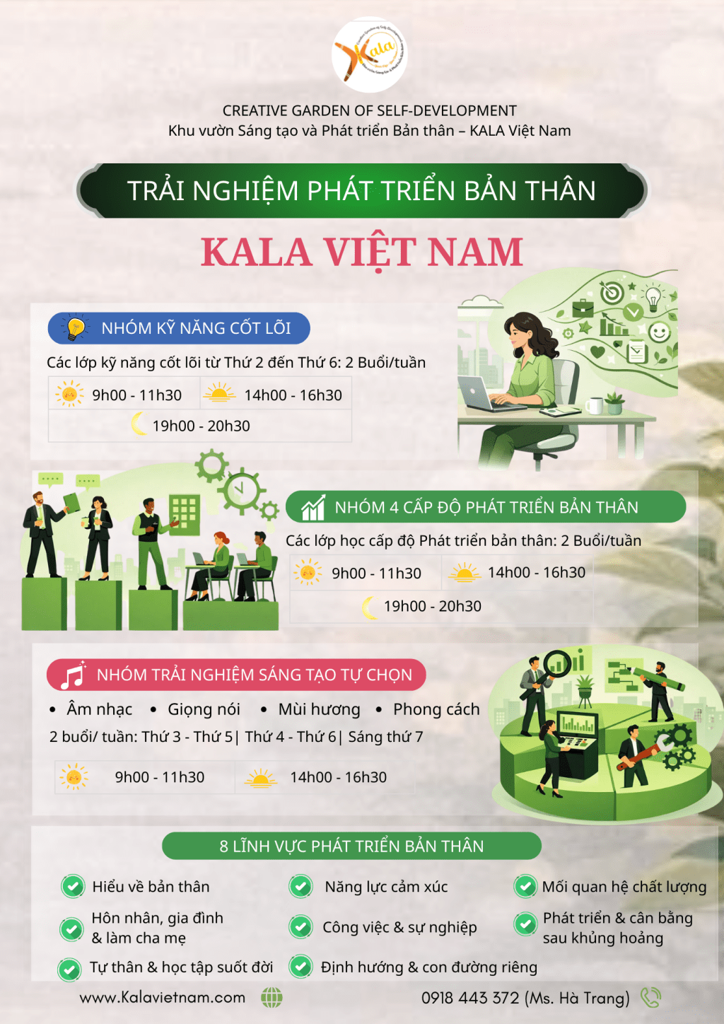 ✍️Hãy để lại thông tin đăng ký bên dưới. KALA sẽ liên hệ để cùng bạn mở ra một hành trình phát triển bản thân chân thật – bền vững – và đầy cảm hứng.